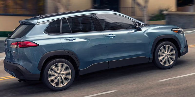 The Corolla Cross’s suspension system, featuring a sport-tuned double-wishbone type multi-link rear suspension in hybrid models, ensures a comfortable and composed ride across various driving conditions.