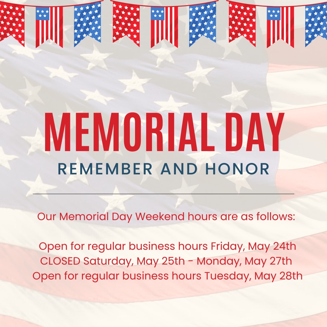 Our Memorial Day Weekend hours are as follows: