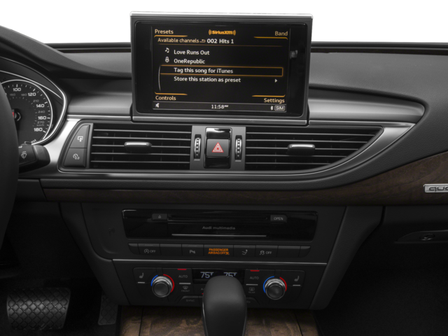 - Radio: Audi MMI Navigation Plus w/AM/FM -inc: MMI system (MIB), 8" central display screen, control knob and buttons in center console and music interface w/2 USB slots, operates climate control, central locking, instrument cluster, vehicle diagnostics, cellular phone, navigation, CD and radio functions, Audi sound system includes 10 speakers including front center speaker and subwoofer in rear, 180 watts, 6-channel amplifier, SiriusXM satellite radio, 2 tweeters in the dashboard, 1 center-fill speaker in the dashboard, 2 speakers in the front doors, 2 speakers in the rear doors, 2 tweeters in the rear doors and 1 subwoofer under the rear shelf