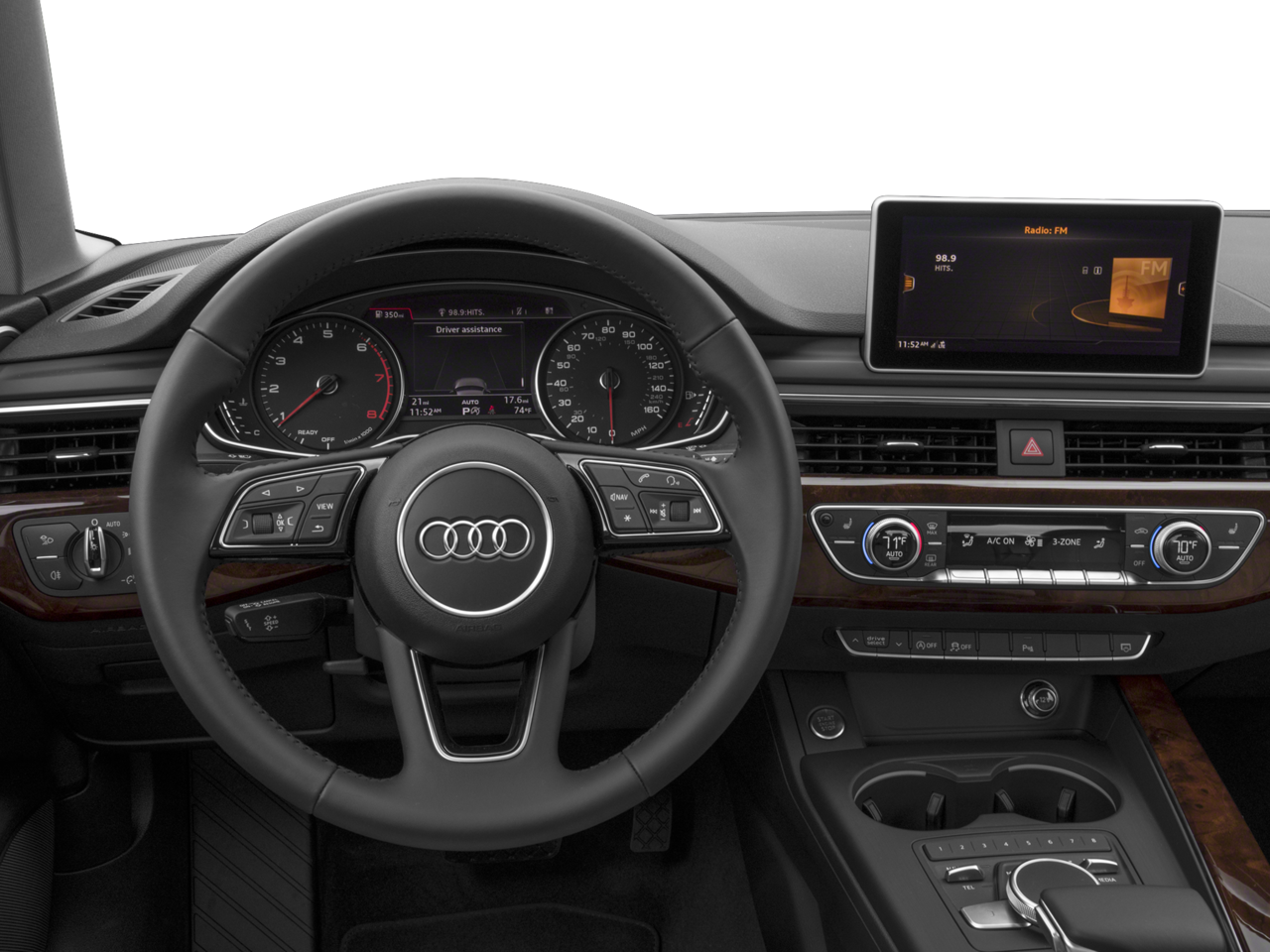 - Radio: Audi Sound System -inc: 7.0" TFT color center infotainment display w/800 x 480 pixel resolution, voice control, Audi smartphone interface (Apple CarPlay and Google Android Auto integration via USB connection mirroring smartphone content directly on MMI display, Integration of navigation, telephone, music and select third-party applications conveniently controlled through MMI controller), Audi music interface w/2 USB ports for data and charging, 10 speakers, single CD player w/MP3 playback capability, HD Radio technology, SDXC card slots w/64 GB operating capacity (dual slots), Bluetooth® streaming audio for compatible devices and Bluetooth® wireless technology preparation for compatible mobile phones