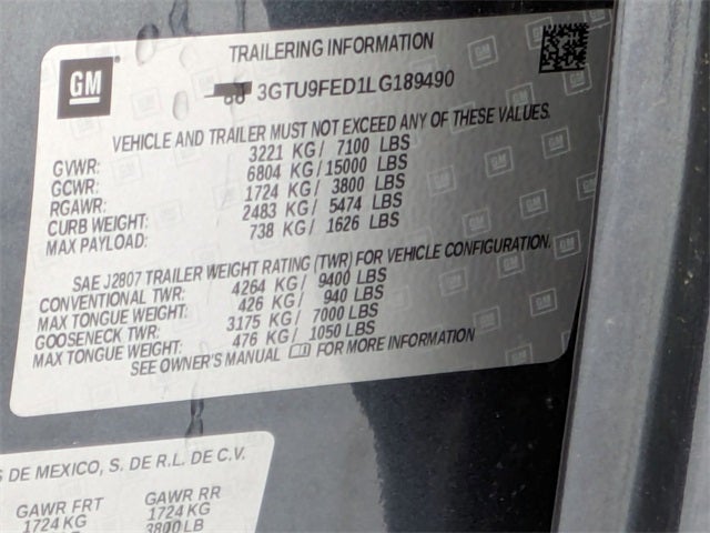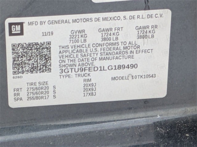 - Front Tire Size: 275/60R20SL