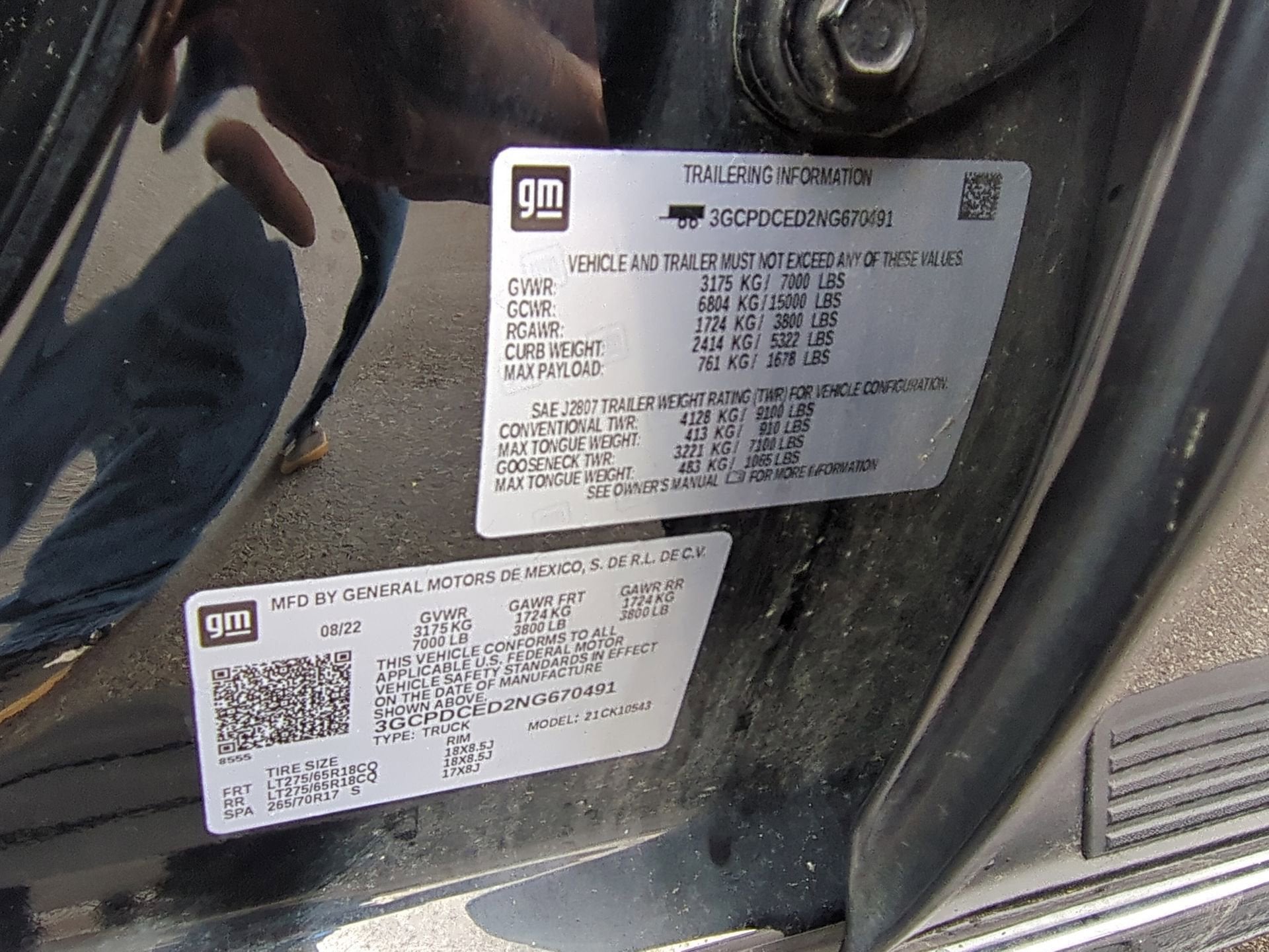 TIRE, SPARE 265/70R17SL ALL-SEASON, BLACKWALL (STD), SEATS, FRONT 40/20/40 SPLIT-BENCH with covered armrest storage and under-seat storage (lockable) (STD), REAR AXLE, 3.23 RATIO, NOT EQUIPPED WITH USB PORTS, REAR, SEE DEALER FOR DETAILS (Beginning with the start of production certain vehicles will be forced to include (RFO) Not Equipped with USB ports rear.), NOT EQUIPPED WITH STEERING COLUMN LOCK, SEE DEALER FOR DETAILS (Certain vehicles built on or after 4-4-2022 will be forced to include (R7N) Not Equipped with Steering Column Lock, which removes Steering Column Lock.), NOT EQUIPPED WITH DYNAMIC FUEL MANAGEMENT, SEE DEALER FOR DETAILS, LPO, BLACK TUBULAR ASSIST STEPS, 6" RECTANGULAR (dealer-installed), LICENSE PLATE KIT, FRONT, JET BLACK, CLOTH SEAT TRIM, GVWR, 7000 LBS. (3175 KG) (STD).