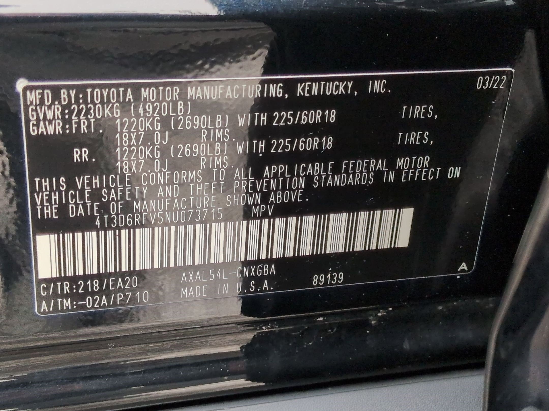 4T3D6RFV5NU073715