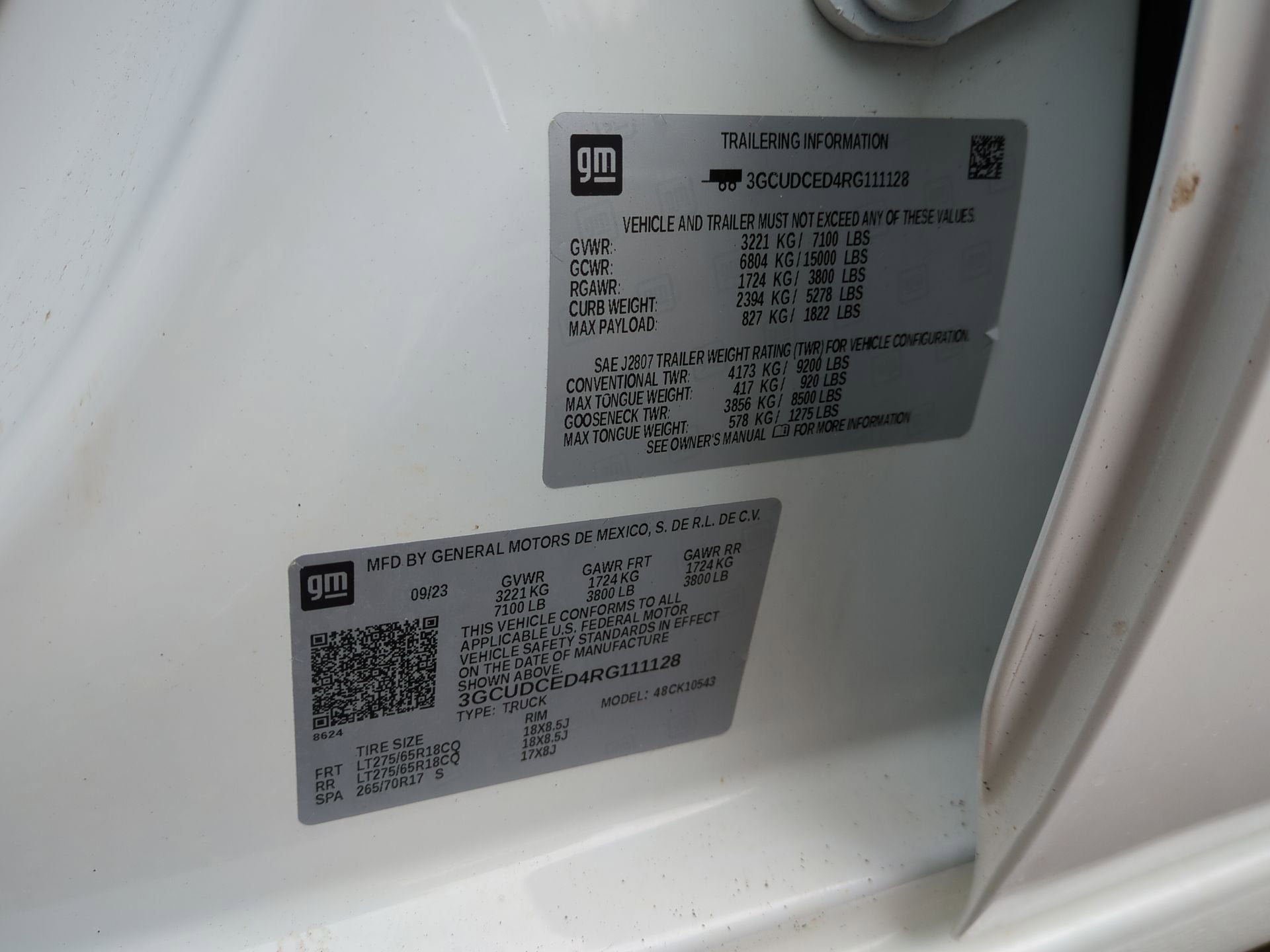 TIRE, SPARE 265/70R17SL ALL-SEASON, BLACKWALL (STD), SUMMIT WHITE, STEERING COLUMN LOCK, ELECTRICAL, SEATS, FRONT 40/20/40 SPLIT-BENCH with covered armrest storage and under-seat storage (lockable) (STD), REAR AXLE, 3.23 RATIO, LICENSE PLATE KIT, FRONT, JET BLACK, CLOTH SEAT TRIM, GVWR, 7100 LBS. (3221 KG), EXHAUST, DUAL WITH POLISHED OUTLETS, ENGINE, 5.3L ECOTEC3 V8 (355 hp [265 kW] @ 5600 rpm, 383 lb-ft of torque [518 Nm] @ 4100 rpm); featuring available Dynamic Fuel Management that enables the engine to operate in 17 different patterns between 2 and 8 cylinders, depending on demand, to optimize power delivery and efficiency.