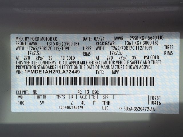 - Tires: LT265/70R17 A/T -inc: full size spare tire w/TPMS