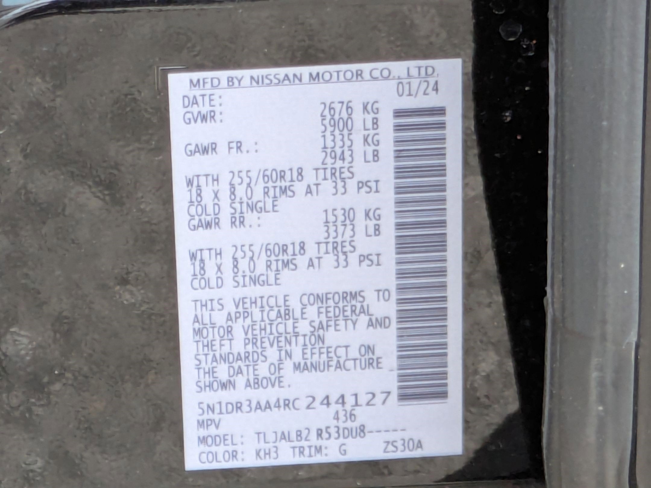 - Tires: 255/60R18 All-Season