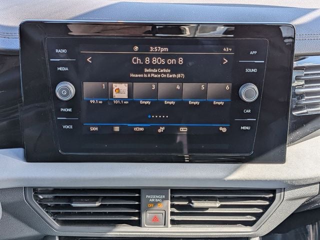 - Radio: MIB3 Composition Media w/8" Touchscreen -inc: AM/FM/HD Radio and WMA/MP3/FLAC player w/USB-C, voice control, Bluetooth® connectivity (for compatible devices), SiriusXM w/360L (w/3-month trial subscription; 360L services require acceptance of Car-Net terms), capability for in-vehicle 4G LTE enabled Wi-Fi (cellular data plan required; includes limited trial), capability for VW Car-Net services (capabilities for certain services vary; requires enrollment or subscription), App-Connect smartphone integration (w/Apple CarPlay, Android Auto and MirrorLink) via USB, wireless App-Connect smartphone integration (for compatible devices) w/multi-phone pairing capability, USB-C enhanced charging, up to 45W (for compatible devices), Qi wireless inductive charger (for compatible mobile phones & accessories) and 6-speaker sound system, All VW Car-Net services subject to terms and limitations, Some services, which include emergency assistance services, require a paid subscription, See dealer or vw.com/carnet for details